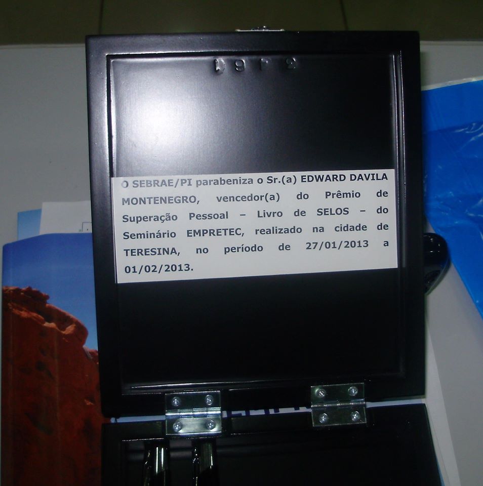 Edwar Montenegro foi agraciado com o Prêmio “Livro dos Selos” durante a 99ª edição do seminário EMPRETEC – PI, organizado pelo SEBRAE. O reconhecimento foi concedido por sua excelência durante o curso e por ser o primeiro formando da turma.