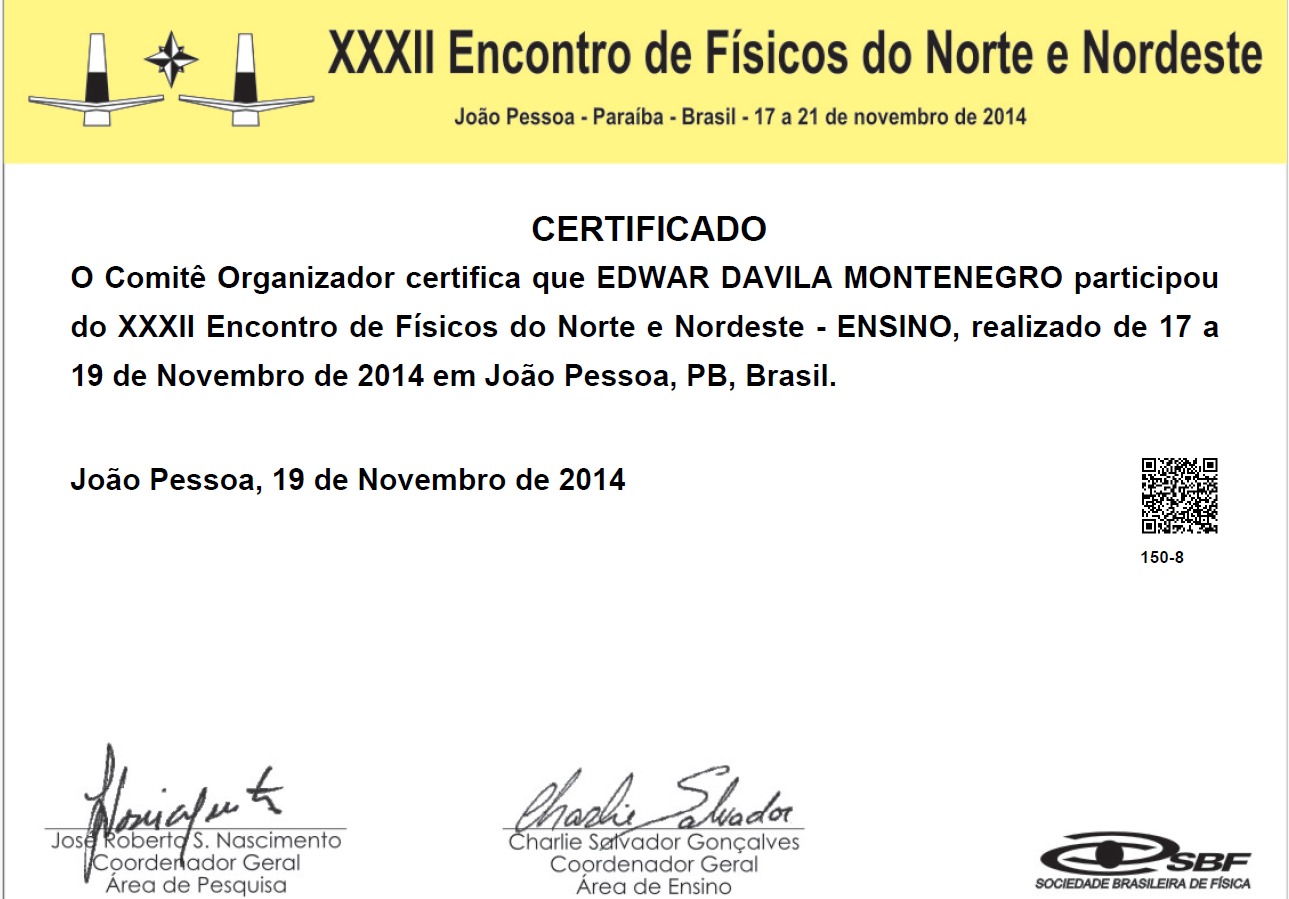 Apresentação do trabalho “GRAVITON SCIENTIFIC SOCIETY: À PROCURA DE UM NOVO MÉTODO DE FAZER E ENSINAR CIÊNCIA” no XXXIII Encontro de Físicos do Norte e Nordeste, realizado em Natal, RN, Brasil.