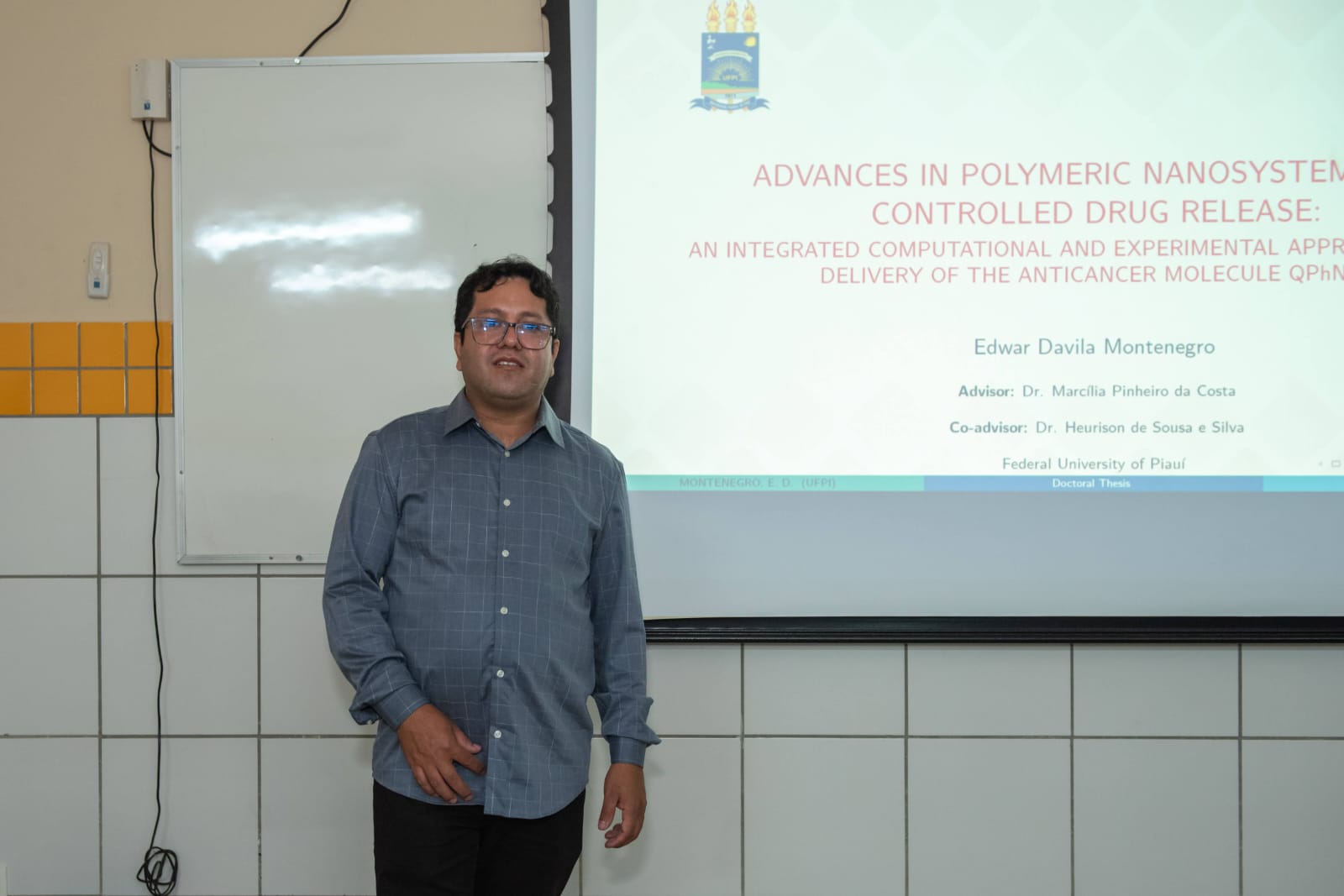 Apresentação e defesa da tese de doutorado intitulada “Advances in polymeric nanosystems for controlled drug release: an integrated computational and experimental approach for the delivery of the anticancer molecule QPhNO₂”